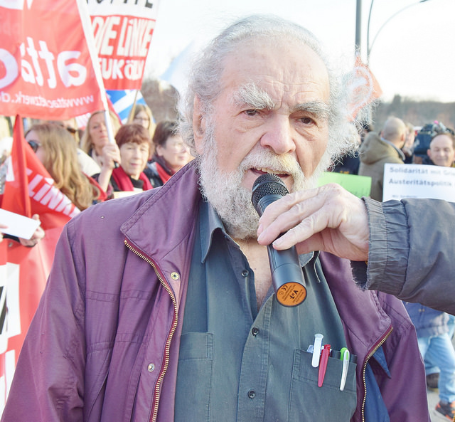 Solidarität mit Griechenland. Ein Vertreter des Solidaritätskomitees,