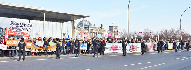 bekunden. Der Protest richtete sich gegen die Sparpolitik der EU und