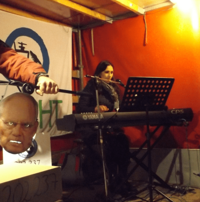 Dorothea Härlin (Berliner Wassertisch, European Water Movement) sagte unter anderem: „Solidarität heißt nicht Mitleid, es heißt voneinander lernen und sich unterstützen im Widerstand gegen den gemeinsamen Gegner: Heute konkret: die AusteritätspolitikerInnen der EU und die großen Wasserkonzerne.“