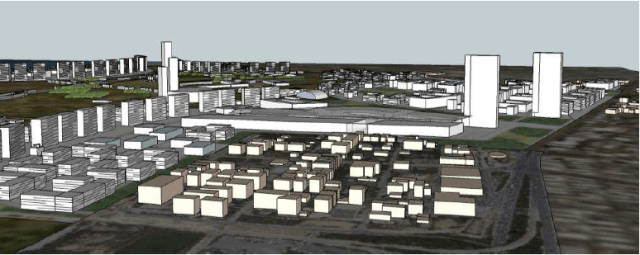 Das genehmigte Projekt von der nordwestlichen Seite her gesehen. Ober-Elliniko-Viertel (3D des Komitees für die Anlegung eines Stadtparks)
