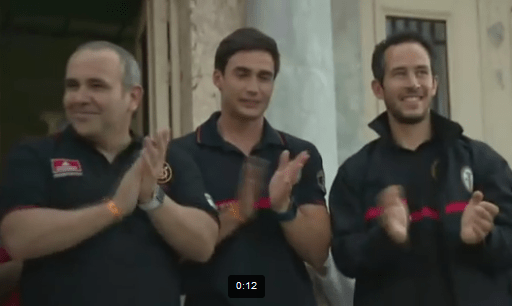Die spanischen Berufsfeuerwehrleute Manuel Blanco und Enrique Rodríguez und Julio Latorre nach dem Urteil