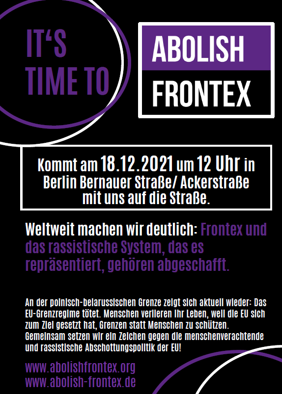 Mehr als 44.764 Menschen sind bei dem Versuch, die Festung Europa zu erreichen, gestorben. In Tripolis protestieren fast 3.000 Geflüchtete vor dem UNHCR-Hauptquartier, nachdem Anfang Oktober 5.000 Menschen in Massenhaft genommen wurden und sechs Menschen ums Leben kamen. Tausende von Menschen sitzen derzeit an der polnisch-weißrussischen Grenze fest, wo sie Gewalt ausgesetzt sind nach Weißrussland zurückgedrängt werden. Journalist*innen und Menschenrechtsaktivist*innen werden aus dem Grenzgebiet ferngehalten, das zu einer militarisierten Zone geworden ist, über die der Ausnahmezustand verhängt wurde.