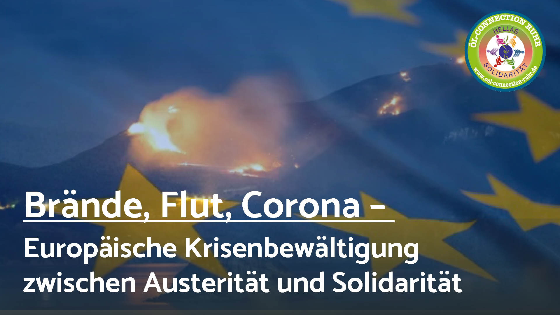 In unserer Online-Diskussionsveranstaltung wollen wir zum einen der Frage nachgehen, inwieweit sich in der Pandemie ein allgemeines Motiv des autoritären Neoliberalismus auf dem Feld der Gesundheit und der staatlichen Daseinsfürsorge insgesamt ausbreitet. Wir möchten dies am Beispiel Griechenlands diskutieren, wo die europäische Austeritätspolitik die Ausgaben für den Gesundheitssektor zwischen 2009 und 2016 und erneut nach 2019 massiv zurückgefahren hat. Zweitens wollen wir nach den Perspektiven solidarischer Praxis im europäischen Maßstab fragen, sowie dem Veränderungspotential des gesellschaftlichen Umgangs mit Gesundheits- und Klimakrisen und Möglichkeiten der Prävention angesichts sich immer deutlicher verschärfender Katastrophen. Denn sowohl in Deutschland während der Flutkatastrophen als auch in Griechenland konnte nur durch das solidarische Anpacken vieler freiwilliger Helfer:innen noch Schlimmeres verhindert werden.