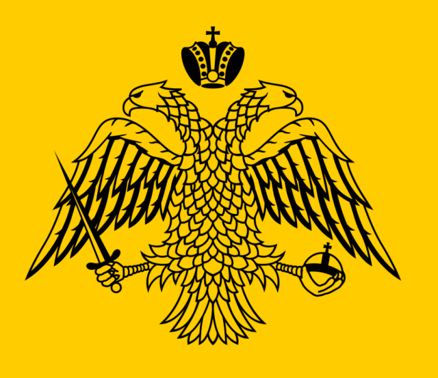 Die Flagge der Griechisch-orthodoxen Kirche; von Flanker – byzantine-flag.gif, Gemeinfrei, https://commons.wikimedia.org/w/index.php?curid=1812107