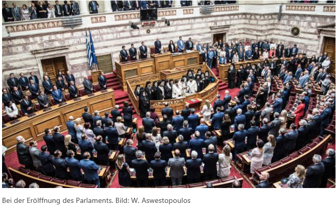 Zum Eklat in der mehrtägigen, in angespannter Atmosphäre geführten Sitzung kam es, als nach Abschluss der Debatte, und nachdem das Parlamentspräsidium das Ende der Sitzung immer weiter verzögerte, Arbeits- und Sozialminister Giannis Vroutsis in buchstäblich letzter Sekunde eine „Tropologia“ einbrachte.“ weiterlesen