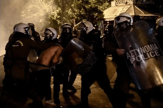 „Unter Premierminister Mitsotakis darf die Polizei entfesselter agieren. Zweck sei es, so ein Gewerkschaftsvertreter der Polizei, Demonstranten von Vandalismus und Angriffen auf Polizisten abzuschrecken.
