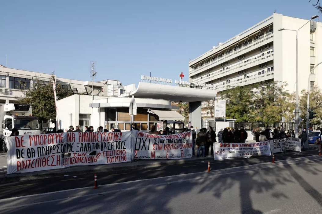 Kundgebung heute Morgen vor dem Hippokrates-Krankenhaus in Thessalonik (vgl. Bericht vom 23.11.2020)