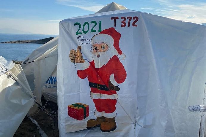 wir wünschen Ihnen ein frohes Weihnachtsfest aus dem neuen Flüchtlingslager auf Lesbos. Wir hoffen, dass Sie trotz der Schwierigkeiten, die wir alle aufgrund der Corona-Pandemie haben, schöne Feiertage haben werden.