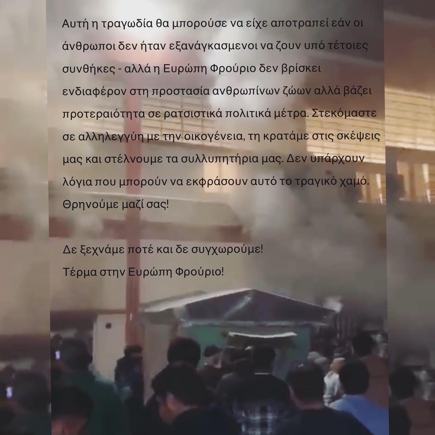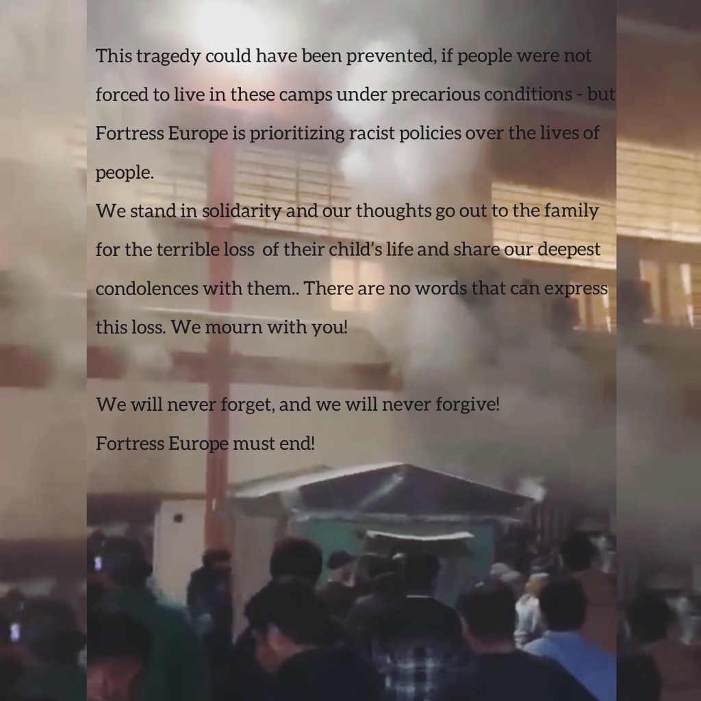 „Diese Tragödie hätte verhindert werden können, wenn die Menschen nicht gezwungen wären, in diesen Lagern unter prekären Bedingungen zu leben – aber die Festung Europa stellt rassistische Politik über das Leben von Menschen.
