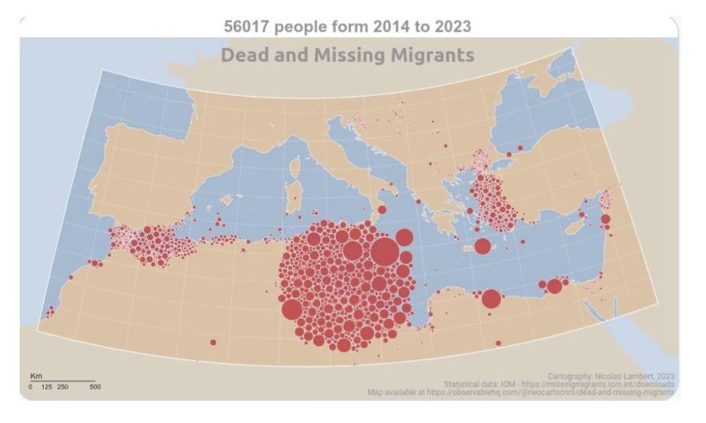 Hier ist eine Karte der Fälle, bei denen Menschen im Mittelmeer in den letzten Jahren ertranken – von denjenigen, von denen wir wissen.