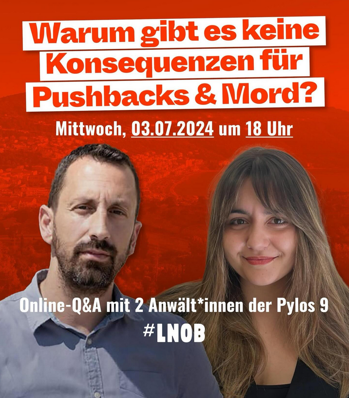 Am 3.7.2024 sprechen wir mit 2 Anwält*innen die im Team des „Human Rights Legal Project“ kontinuierlich für die Rechte von Geflüchteten kämpfen und deine Fragen beantworten wollen. Sie haben u.a. an der Freilassung der Pylos 9 mitgewirkt.