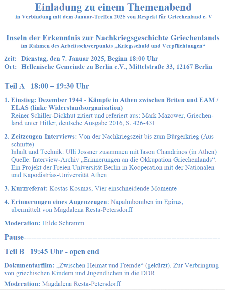 2 Responses to Berlin, 7.1.2025: Inseln der Erkenntnis zur Nachkriegsgeschichte Griechenlands