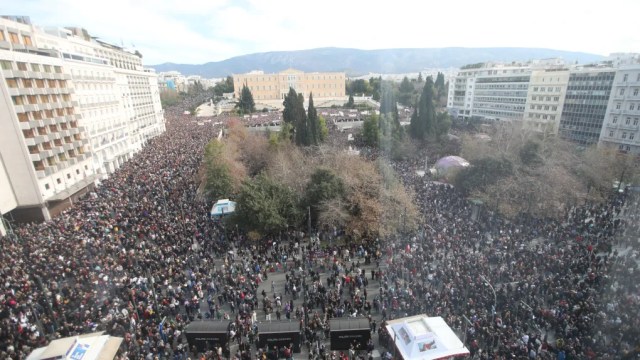 Es war wie das untergründige Grollen eines Vorbebens, das tektonische Verschiebungen gigantischen Ausmaßes in der Tiefe ankündigt: Am 26. Januar versammelten sich hunderttausende Menschen auf den zentralen Plätzen der Städte und Dörfer Griechenlands, um gegen die Vertuschung der Ursachen der Eisenbahnkatastrophe in der Nähe von Tempi vor zwei Jahren durch die griechische Regierung zu protestieren und Aufklärung zu verlangen. Selbst Dörfer auf abgelegenen Inseln mit nur wenigen hundert Einwohnern erlebten die vielleicht erste Kundgebung ihrer Geschichte. Es waren vergleichsweise stille, von Trauer und Wut gekennzeichnete Manifestationen, zu denen der Verein der Angehörigen der Opfer und der Überlebenden der Katastrophe aufgerufen hatte. Scheinbar aus dem Nichts erhob sich die griechische Bevölkerung, um eine scheinbare Selbstverständlichkeit zu fordern: Die Ermittlung und Bestrafung der Verantwortlichen für das Verbrechen von Tempi.“