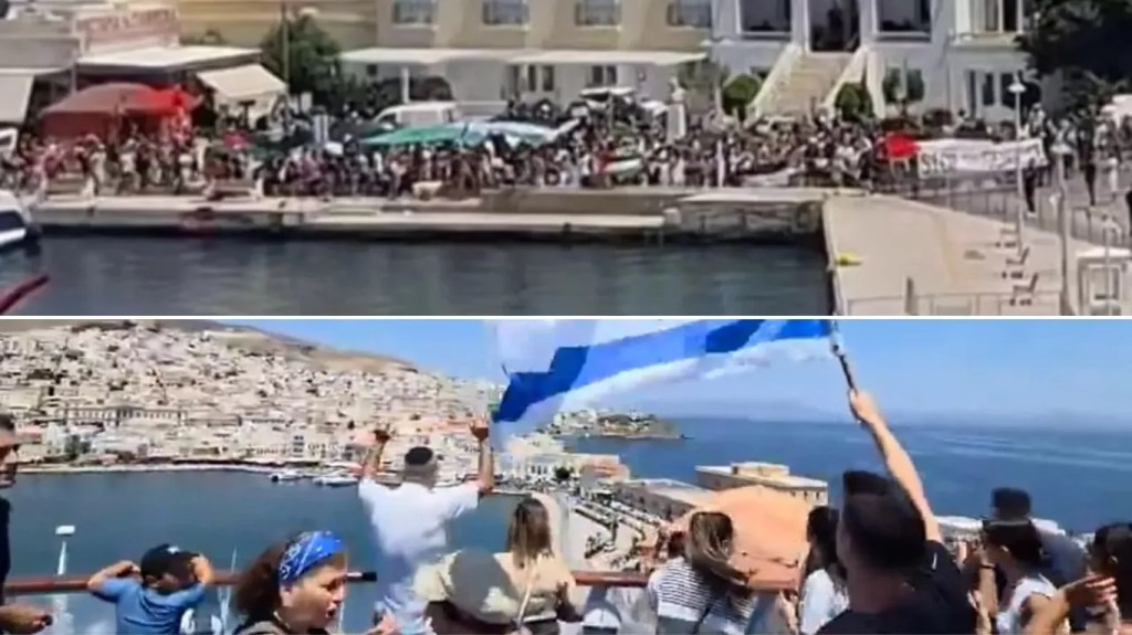 Auf der griechischen Insel Syros wurden Passagiere des israelischen Kreuzfahrtschiffes „Crown Iris“ daran gehindert, für einen sechsstündigen Besuch von Bord zu gehen. Stattdessen steuerte das Kreuzfahrtschiff Zypern an. Am Dienstagmittag hatten sich in der Hafenstadt Ermoupolis Bürger zu einer friedlichen Kundgebung zur Unterstützung Palästinas versammelt. Sie marschierten vom Miaouli-Platz zum Stadtteil Nissaki, wo das Kreuzfahrtschiff anlegen sollte.
