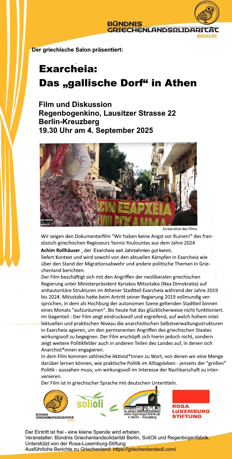 Zu einer aktuellen Entwicklung des Exarcheia-Platzes siehe: „Erfolg der Bewegung gegen die U-Bahn-Station auf dem Exarcheia-Platz“ von Achim Rollhäuser