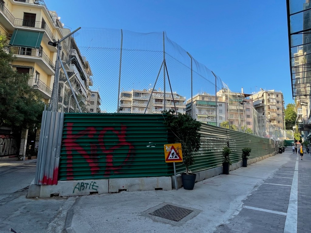 7. Januar 2025: Das vierte in einer Reihe von Verfahren, in denen Hellenic Metro weiterhin versucht, die Entscheidung früherer Gerichte, den Zaun auf der Themistokleous zu versetzen, aufzuheben, ist abgeschlossen. Vor Gericht spielt das Konsortium ein Theater des Absurden und behauptet sogar, dass nicht alle Wohngebäude auf der Themistokleous bewohnt seien und daher keine Gefahr bestehe.