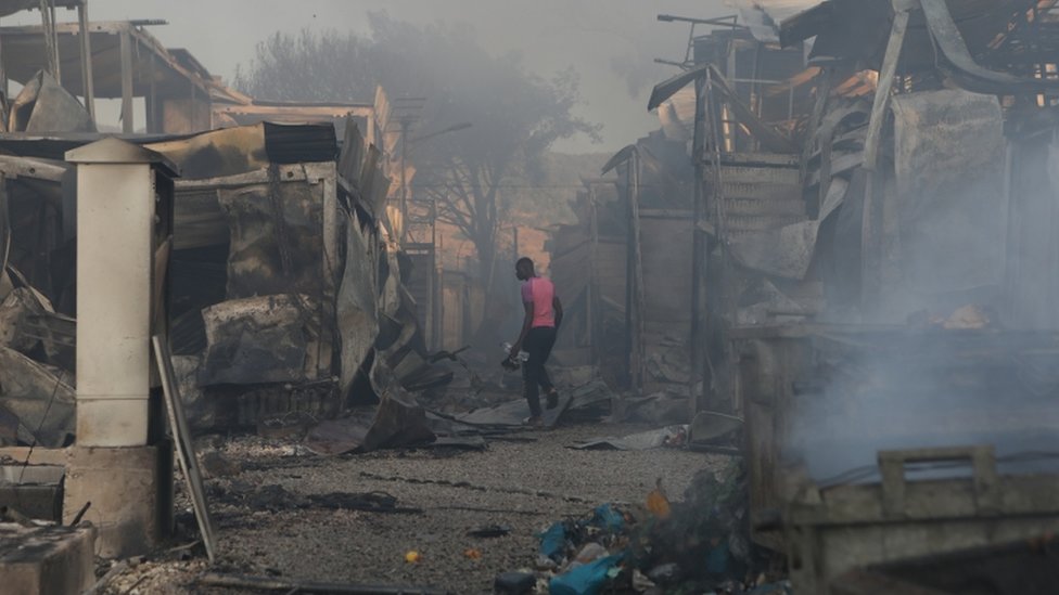 „Gegen 19:30 Uhr brachen in den nicht verbrannten Teilen des Lagers zwei feurige Fronten aus. Tausende Menschen verließen die verbleibenden Zelte und schlossen sich den Tausenden anderer obdachloser Flüchtlinge und Migranten an.